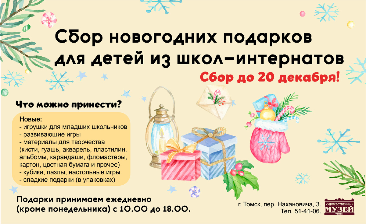 Продолжим добрую традицию собирать подарки коллективом томского художественного музея вместе с отзывчивыми томичами.