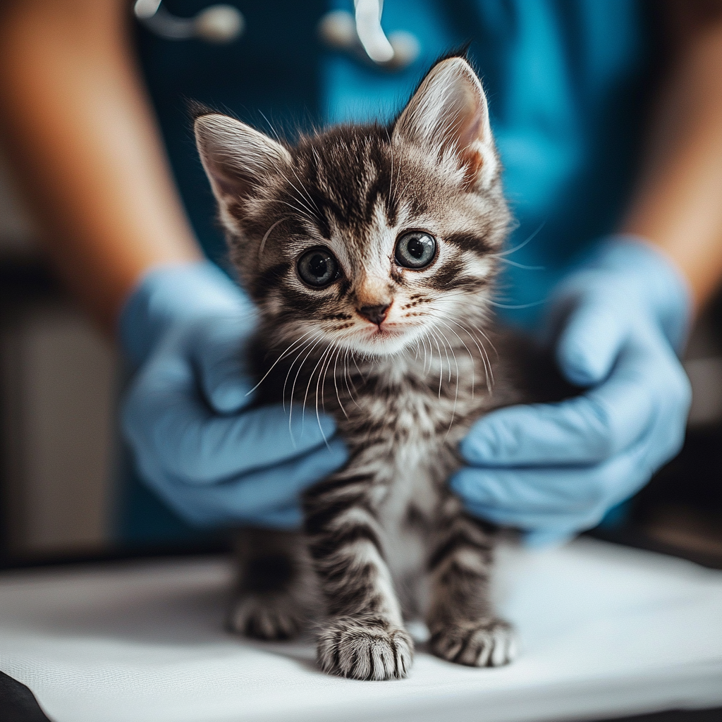- Осмотр ветеринара. Перед прививкой врач должен убедиться, что котёнок здоров. Даже лёгкая простуда — повод перенести вакцинацию.