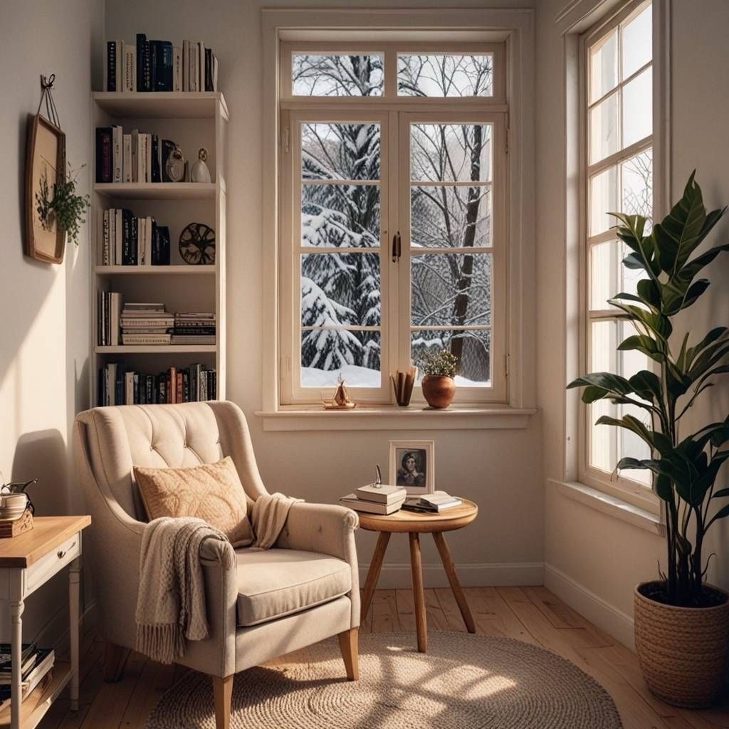 Лучше всего подбирать светильники или торшеры с мягким теплым светом или оставлять естественный свет, проникающий из окна.