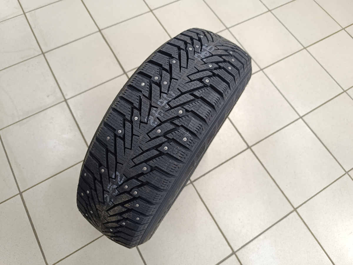 Бренд Amtel прекратил свое существование много лет назад, но не так давно был возрожден производителем Pirelli. А вы помните такую шину Amtel Nordmaster ST? В свое время это была одна из лучших моделей в бюджетном сегменте. Да, шумела как самолет, зато в снегу ей не было равных, шина имела отличное сцепление и проходимость. Но что-то пошло не так, и компания обанкротилась, а пару лет назад ее подобрали ребята из Пирелли. Выкупили права и решили разработать новую бюджетную модель и продавать под уже знакомым брендом. Как вы уже поняли, новая модель производится компанией Pirelli и к старому заводу не имеет никакого отношения. Рисунок, состав резиновой смеси и шипы разработаны в Пирелли, так давайте же взглянем на нее поближе. Шина поставляется без наклеек, все по канону бюджетных моделей, мы видим только маркировку Честный знак. Рисунок направленный, но от классического отличается. Мы видим очень плотный протектор в пятне контакта, что должно обеспечивать хорошее сцепление на асфальте.