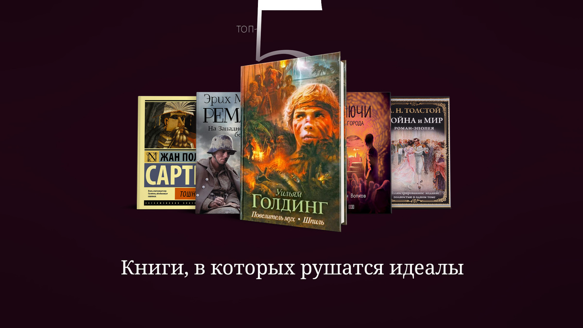 «Повелитель мух» — Уильям Голдинг Мальчики, оставшиеся на необитаемом острове, теряют человечность и погружаются в жестокость. Роман об утрате цивилизации и моральных ориентиров в условиях полной свободы и безнаказанности. «На Западном фронте без перемен» Эрих Мария Ремарк История солдат Первой мировой войны, чьи романтические представления о героизме сталкиваются с ужасами боевых действий. Роман о потере иллюзий и неизбежной жестокости войны. «Ключи от города» Иван Волков Это история молодого человека, чья жизнь кардинально меняется на фоне трагически утраченной любви. Главный герой погружается в мир афер и моральных компромиссов, проходя через внутреннюю борьбу и трудные выборы. Это роман о взрослении, падениях и поиске себя. «Война и мир» Лев Толстой Эпопея о наполеоновских войнах, где судьбы героев переплетаются с историческими событиями. Толстой исследует утрату идеалов и глубинные изменения в обществе и личности на фоне масштабных катаклизмов. «Тошнота» Жан-Поль Сартр Философский