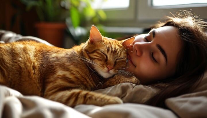 Часто у мурлык есть любимчик, с которым они готовы проводить все ночи Порой из всех домочадцев кошка выбирает одного человека, с которым она будет спать, хотя вполне может проводить ночи и одна в мягкой лежанке. Но если ваша мурлыка решила спать с вами, примите этот жест с открытым сердцем. Почему же кошка выбирает себе определённого компаньона для сна? Чем обусловлен её выбор? Зоопсихологи считают, что кошка предпочитает пристроиться рядышком с тем, кто проводит с ней больше всего времени. Значит, она вас любит и хочет быть с вами даже ночью — вы дарите ей ощущение спокойствия и защищенности. Доверие играет решающую роль во взаимоотношениях. Можно заметить, что часто кошка близка с человеком, который наполняет её миску кормом. Если вы тот человек, который позволяет пушистому кошачьему животику ощущать сытость, то вы можете получить признательность в виде совместного сна. Конечно, лучше спать в мягкой, тёплой постельке, поэтому вполне логично устроиться в хозяйской кровати. Кошка, как