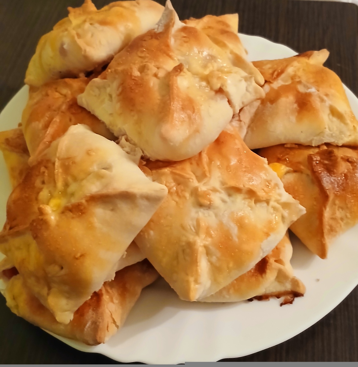 Конвертики из слоеного теста с очень вкусной начинкой можно приготовить к завтраку, также они подойдут для быстрого перекуса, а еще их удобно взять с собой. Кроме того, готовятся они очень быстро. Продукты: Слоеное тесто раскатать и равномерно разрезать на одинаковые квадратики. Колбасу порезать кубиками или соломкой. Сыр натереть на терке. Помидор нарезать на кубики (лишнюю жидкость желательно убрать). Порезать зелень. Смешать все ингредиенты вместе. Выложить начинку на квадраты теста. Уголки теста собрать и слепить в середине. Оставшиеся края также аккуратно залепить, чтобы получился закрытый конвертик. Выложить на противень, смазать яйцом. Выпекать при температуре 200 градусов, около 15-20 минут.