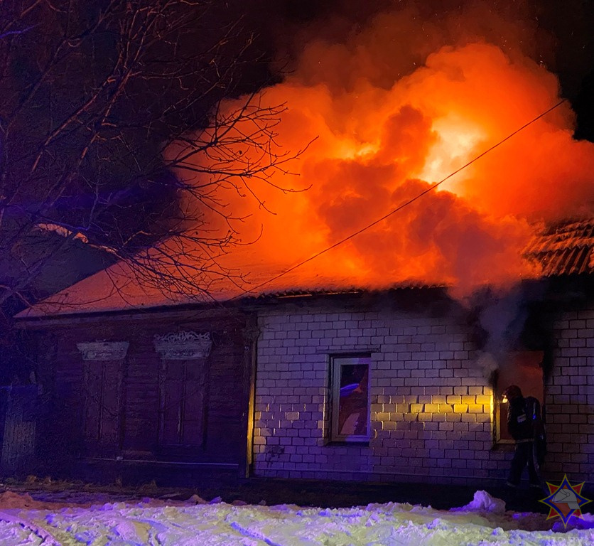 Утром 26 ноября на номер 112 поступило сообщение о пожаре двухквартирного жилого дома в г. Гомеле по ул. Лещинской. По прибытии спасателей кровля дома была охвачена огнем, наблюдалось горение внутри квартиры. Как выяснилось, собственник квартиры и его супруга на момент возникновения пожара находились дома. Проснувшись от звука сработавшего автономного пожарного извещателя, самостоятельно покинули квартиру до прибытия подразделений МЧС. После осмотра работниками скорой медицинской помощи с предварительным диагнозом «термические ожоги 5% тела» госпитализирован собственник квартиры. Его супруга с диагнозом «отравление продуктами горения» также направлена в больницу. В результате пожара уничтожено имущество внутри квартиры, повреждены потолочное перекрытие в квартире и кровля дома. Рассматриваемая версия причины пожара – нарушение правил эксплуатации электросетей и электрооборудования.