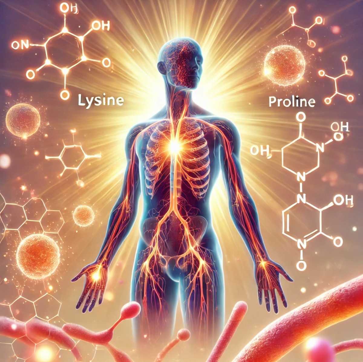 Лизин и пролин — это аминокислоты, которые играют важную роль в поддержании здоровья и восстановлении организма. Они не только участвуют в формировании тканей, но и помогают справляться с различными нагрузками, укрепляют иммунитет и замедляют процессы старения. Сегодня эти вещества доступны в удобной форме — в виде капсул, которые можно включить в ежедневный рацион. Лизин — незаменимая аминокислота, которую организм не может синтезировать самостоятельно. Она необходима для: 1. Синтеза коллагена — белка, отвечающего за прочность и эластичность кожи, костей, связок и сосудов. 2. Поддержания иммунитета — лизин способствует выработке антител и помогает организму бороться с инфекциями. 3. Усвоения кальция — улучшает минерализацию костей и защищает от остеопороза. 4. Борьбы с вирусами — подавляет активность вируса герпеса, ускоряя заживление высыпаний. 5. Заживления ран — участвует в регенерации тканей, ускоряя восстановительные процессы. Лизин в капсулах подходит тем, кто хочет укрепи