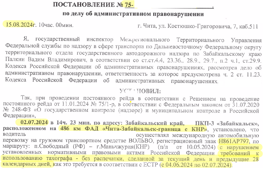 Если одно или несколько нарушений не будет отражено в постановлении – при следующем контроле возможно наказание за эти нарушения. Также должно быть обозначено в постановлении отсутствие ручного ввода, в случае если нет письма отдыха. На распечатке отсутствие ручного ввода - знак «?».
