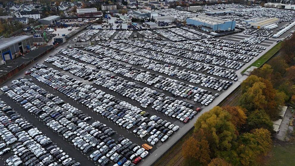 На логистической площадке CAT Automobillogistik в Эссене скопилось около шести тысяч новых непроданных автомобилей. Дорогие модели Volkswagen, Audi и электрокары стоят по полгода, некоторые - даже больше года.