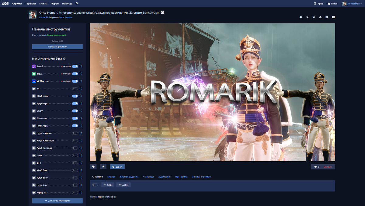 Всем привет и добро пожаловать на мой канал! Меня зовут Роман, и сегодня расскажу вам о проведении рестрима через сторонние сервисы. Рассмотрим три сервиса, которыми пользуюсь уже несколько лет. Restream позволяет транслировать видео сразу на несколько платформ, что увеличивает охват аудитории и привлекает новых зрителей. Это также избавляет от необходимости загружать и повторно загружать видео на разные площадки. Goodgame — это первая киберспортивная стриминговая платформа в СНГ. Здесь можно найти стримы игр и IRL, турниры по популярным играм, околоигровые и киберспортивные новости. Плюсы: Минусы: Plvideo — это российский видеохостинг, запущенный 28 июня 2024 года. Он максимально приближен к YouTube по интерфейсу и функционалу. На платформе есть система рекомендаций, инструменты продвижения и аналитики для блогеров, а также поддержка форматов видео вплоть до 4K с субтитрами на русском и английском языках. Плюсы: Минусы: StreamVi — это сервис ретрансляции видеоконтента, который позвол