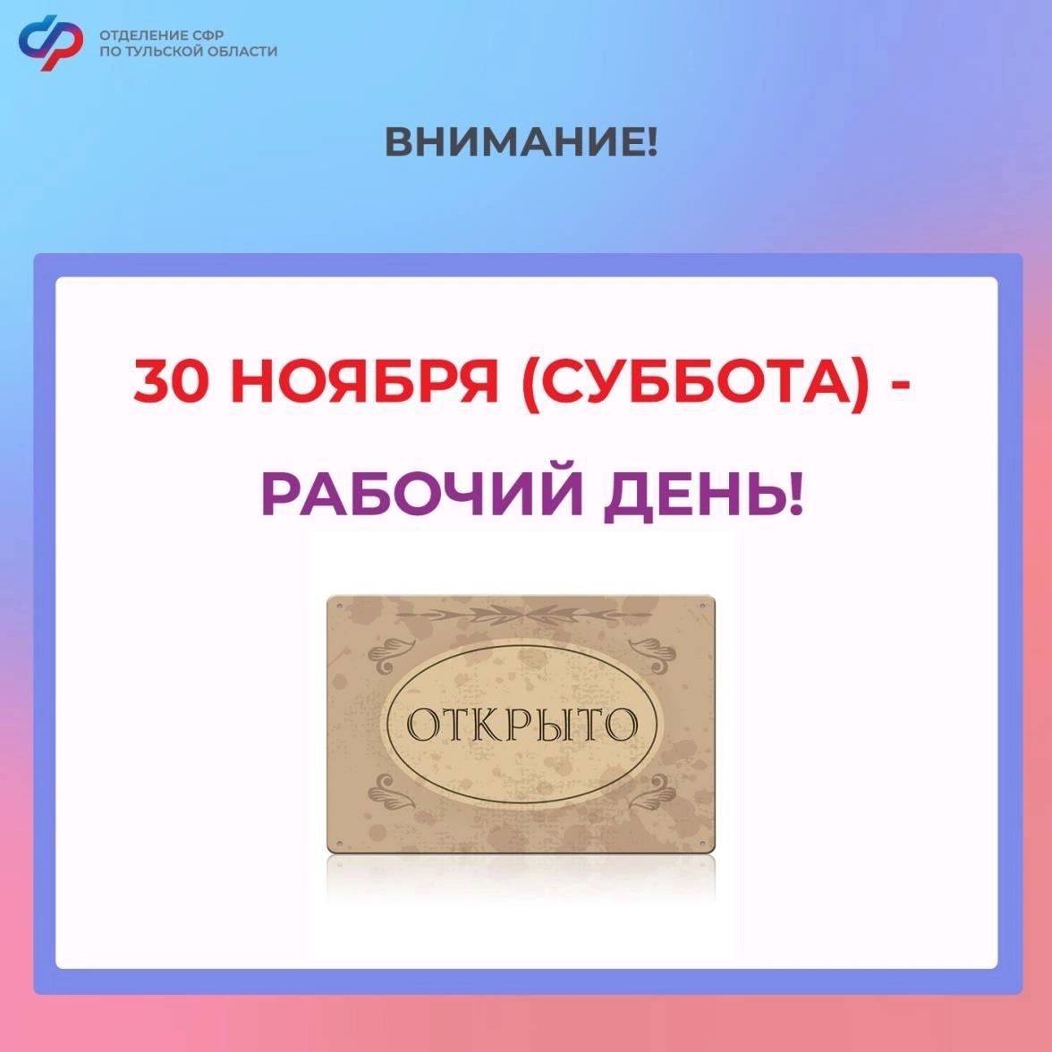 Отделения СФР по Тульской области будут работать в субботу