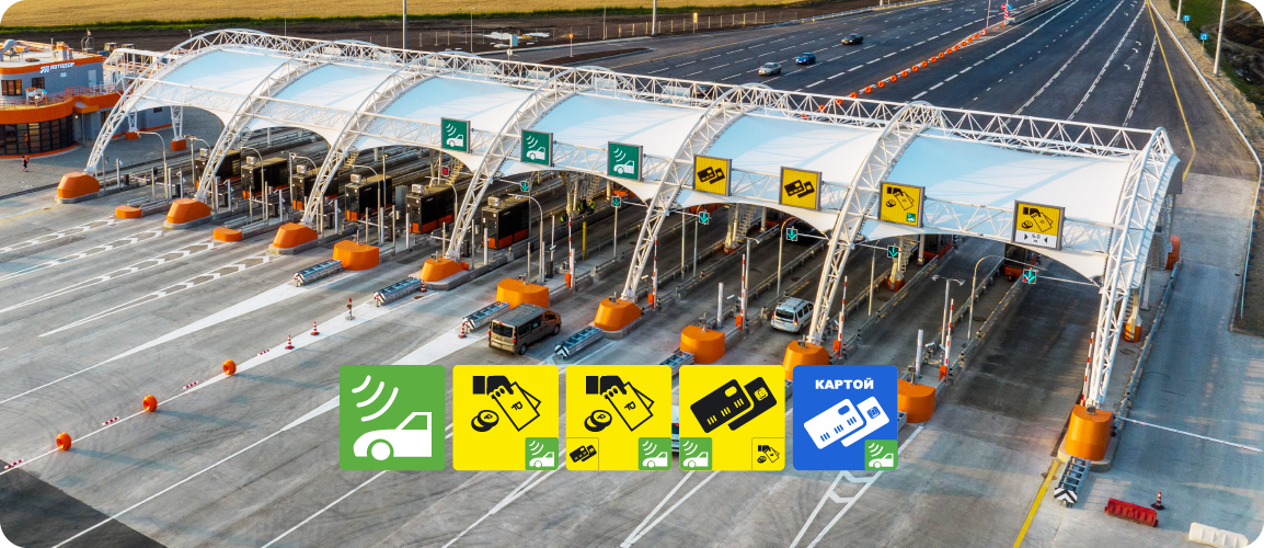 Как же хочется отправиться в путешествие, чтобы время в пути пролетело незаметно. И это возможно! Автодор строит и развивает опорную сеть скоростных трасс, на которых нет светофоров и пробок. Современные трассы сделают ваши путешествия более комфортными. Перед началом поездки мы советуем приобрести транспондер T-pass. У устройства есть пять неоспоримых преимуществ: Если вы поедете по трассам М-1, М-3, М-4 или М-11, то в начале пути увидите Пункт взимания платы. Обратите внимание на знаки, установленные над полосами. Именно они указывают способ оплаты. Синий фон обозначает оплату только банковскими картами, желтый фон – возможность оплаты наличными и банковскими картами, а зеленый – проезд только с транспондером. Будьте внимательны, проехать с транспондером можно по любой полосе с зеленой пиктограммой, расположенной в углу любого знака. Если вы поедете по М-12 или ЦКАД, то здесь нет привычных шлагбаумов и Пунктов взимания платы. Проезд осуществляется безбарьерно, благодаря инновационно