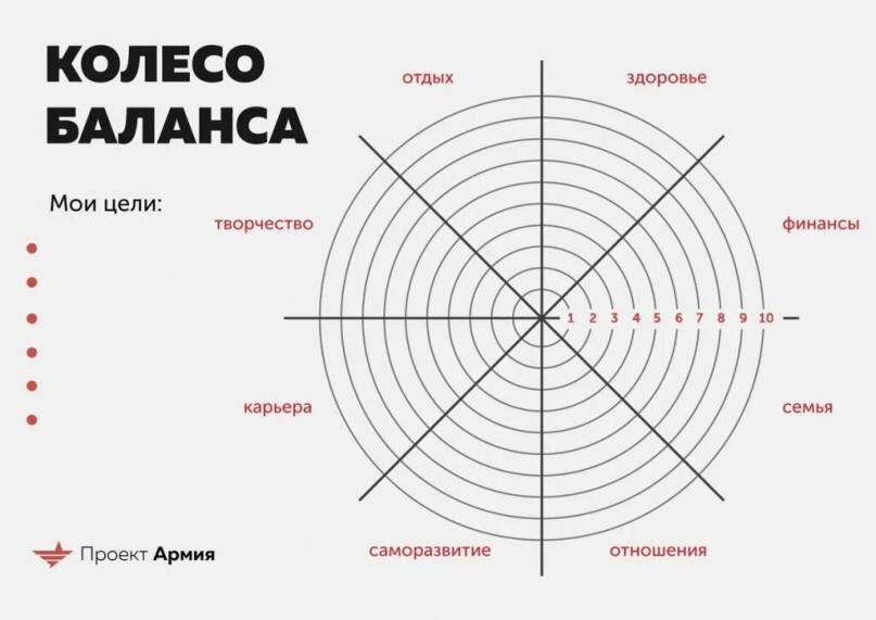 Оцените сферы жизни. Оцените, насколько вы удовлетворены каждой сферой жизни, по десятибалльной шкале.
