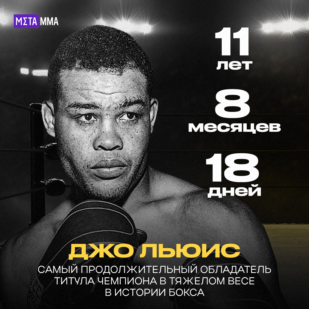 🔥🥊Самым продолжительным обладателем титула чемпиона мира в тяжелом весе в истории бокса является Джо Льюис, который удерживал титул чемпиона мира в тяжелом весе 11 лет, 8 месяцев и 18 дней! (с 22 июня 1937 года по 1 марта 1949 года) За время своего правления Джо Льюис защищал титул чемпиона мира 25 раз, что является рекордом, который сохраняется и по сей день. Это невероятное достижение укрепило его репутацию одного из величайших чемпионов тяжелого веса в истории бокса Легенда! 👑