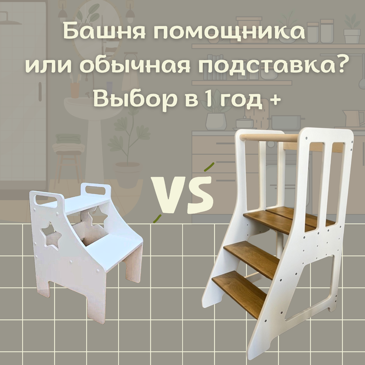 Если малыш стал постоянно отвлекать от кухонных дел, проситься на руки, а вас стали посещать мысли о приобретении башни помощника, то этот пост для вас. Предыстория. Софии стукнуло чуть больше года, она уже уверенно передвигалась на своих двоих, а интерес к происходящему на кухне утроился. И пришли они, истерики. Добавим еще сюда кризис возраста, новые зубы и просто проверку дозволенности, и получится вечное желание сидеть на руках. Именно в этот период я серьёзно думала над приобретением башни помощника. Долго выбирала, взвешивала все за и против. В итоге, я её заказала. Первые дни я считала её спасением, но спустя пару недель, я жалела о покупке, а после увезла её на дачу. Далее я попытаюсь кратко взвесить за и против, а также расскажу и про аналог в виде подставки. Плюсы башни помощника: Минусы башни помощника: И ещё, кризисы у детей проходят, и желание постоянно быть на руках тоже. В моем случае, через пару недель ребёнку уже было не особо интересно постоянно находит