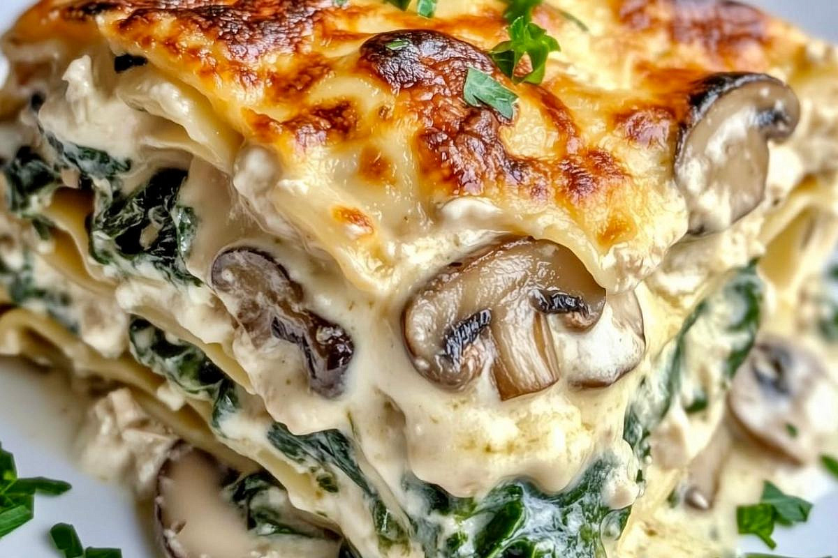 Сливочная лазанья из шпината и грибов Если вы ищете идеальное блюдо для уютного семейного ужина или хотите удивить гостей, сливочная лазанья из шпината и грибов станет отличным выбором. Богатый сливочный вкус соуса Альфредо, нежная текстура сыра и насыщенный аромат грибов создают сочетание, которое невозможно забыть.