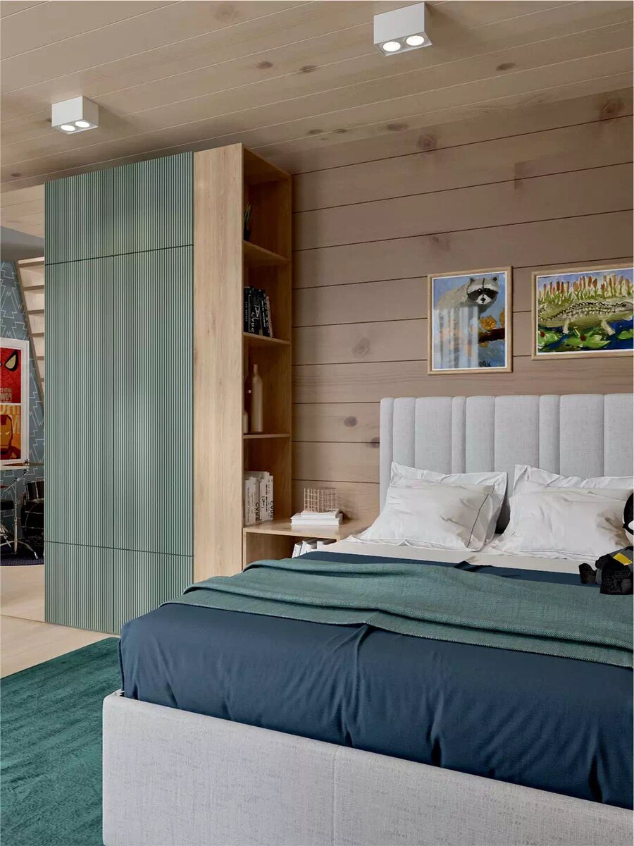 Авторская мебель в комнату мальчика со стильным интерьером в спокойных тонах — проект 5365-1