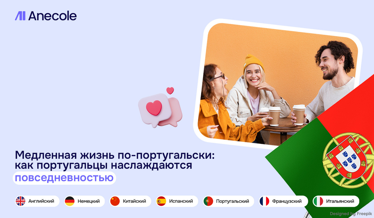 Для португальцев жизнь — это больше, чем выполнение задач. Она состоит из приятных моментов, общения, времени с семьёй и вкусной еды. Хотите узнать, как жить медленно и счастливо, как португальцы? Начните с изучения португальского языка в Anecole! Запишитесь на бесплатный пробный урок на сайте Anecole и откройте для себя философию "саудаде" и медленной жизни. Мы ждём вас!