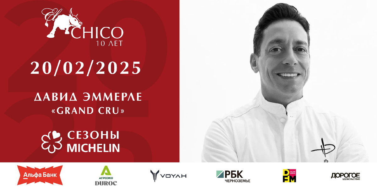 Оживите свои вкусовые рецепторы с ужином от шеф-повара Давида Эммерле в рамках проекта СЕЗОНЫ МИШЛЕН EL CHICO с гордостью представляет уникальное событие – ужин от шеф-повара Давида Эммерле ( звезда Michelin). Этот вечер обещает стать настоящим гастрономическим праздником, где каждый гость сможет насладиться изысканными блюдами, созданными в авторском стиле талантливого шефа. Давид Эммерле, возглавивший кухню Grand Cru более трех лет назад, привнес в ресторан свои богатые кулинарные экспертизы и страсть к созданию современных блюд. «Французская классическая школа — это фундамент. На её основе я создаю современные блюда в моем авторском стиле. Я вкладываю в них заботу и ощущения праздника: яркая эмоция — за этим люди и возвращаются в ресторан», — говорит шеф. Кулинарный путь Давида начался тридцать лет назад на севере Эльзаса. За эти годы он приобрел безупречный опыт, работая в таких известных местах, как ресторан Янника Аллено Pavillon Ledoyen в Париже (3 звезды Michelin) и в роскошны