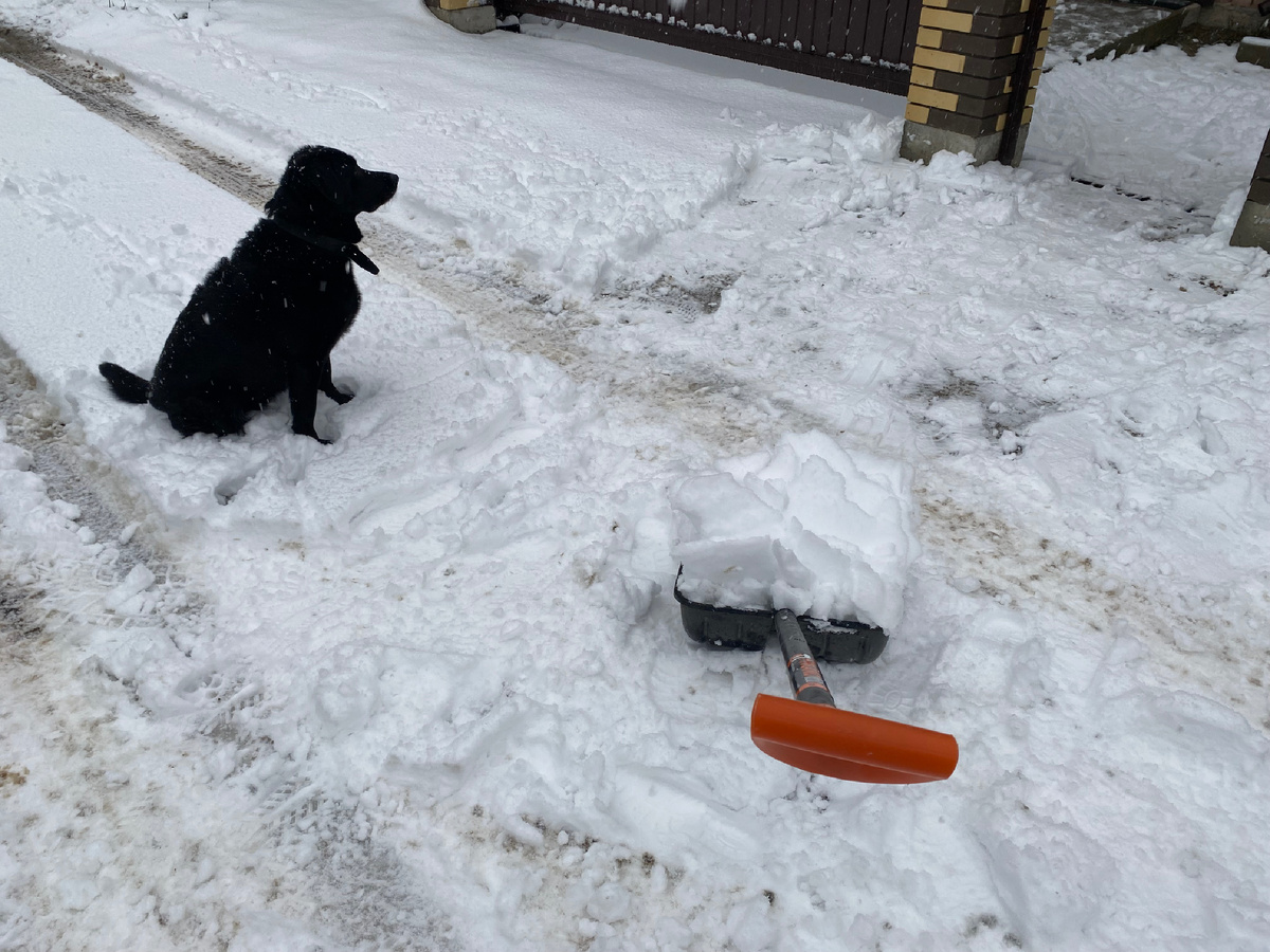 Доброе время суток. Я думала летом время бежит, оно оказывается вообще стало как - то быстро бежать. Не успела глаза открыть, зевнула, уже вечер. С мужем на выходные поехали на дачу. Чтоб никого не просить за Норой присматривать, решили ее взять с собой. Как только сказала ей, поедем на дачу, началось настоящее нытье, из разряда, не хочу, не буду. С горем пополам запихнула ее в машину, накормила вкусняшками и оставшуюся дорогу с мужем слушали ее скулеж. Благо ехать недалеко. Решили сначала почистить снег, а потом уже наводить в гараже порядки. Чищу снег, говорю Норе, давай играть, она обожает у нас снег. Куда там, отвернулась и сидит ноет. Открыла ей дом, говорю пошли, будешь дома нас ждать. Зашли, ну как только я пошла обратно во двор, пулей вылетела за мной. Пошли чистить дальше двор. И тут ей пришло вдохновение. Схватила метлу и начала носиться по всему двору. Отбирать не стала, чем бы дитя не тешилось, лишь бы не плакало. Тут также. Даже не знаю сколько времени она пробегал