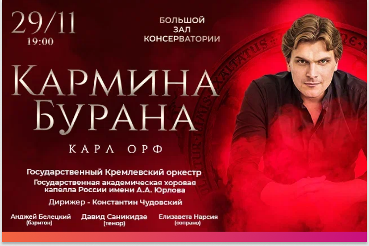 Музыкальный шедевр "Кармина Бурана" - это не просто концерт, а захватывающее путешествие в мир средневековой поэзии и страсти, которое перевернет ваше представление о классической музыке. 29 ноября в Большом зале Московской консерватории слушатели станут свидетелями грандиозного музыкального события, где сама история оживет в звуках. Карл Орф создал это произведение в 1936 году, вдохновившись средневековыми рукописями бродячих поэтов-вагантов, найденными в баварском монастыре. Композитор смог невероятно точно передать дух средневековой свободы, любви и человеческих эмоций через мощные, первозданные ритмы и захватывающую музыкальную композицию. Музыкальное путешествие подарят два выдающихся коллектива. 🔴Государственный Кремлевский оркестр, основанный в 2019 году, объединяет блестящих музыкантов - выпускников престижных консерваторий и лауреатов международных конкурсов. Художественный руководитель оркестра Константин Чудовский - молодой, талантливый дирижер, лауреат молодежной премии "