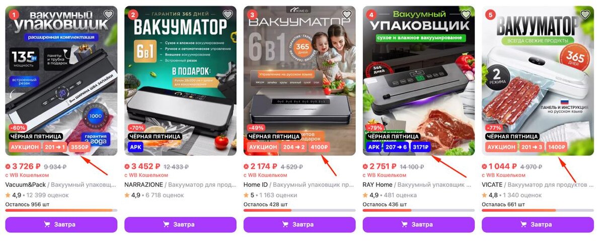 🤔 Какие конверсии считать идеальными? ▪️ Супер популярный вопрос. На консультациях он постоянно звучит. А ответа нет. Знаете почему? Потому что любые конверсии, и супер высокие, на первый взгляд, и супер низкие - могут как ложиться в юнитку, так и не укладываться. ▪️ Разберем на конкретном примере... Запрос Вакууматор или Вакуумный упаковщик (разницы там практически не будет, и тот и второй - достаточно дорогие запросы). Средние ставки в подобных товарах всегда высокие (можно посмотреть на скрине) ▪️ По опыту работы с данным товаром (а за последние 4 года у нас было не менее 10 клиентов с Вакууматорами), если предложение хорошее (фото, цена, отзывы конкурентоспособны) - то средний CTR по этим запросам будет в районе 5,5% ▪️ Какая конверсия в корзину и заказ считается хорошими? А вот, как раз, на этот вопрос невозможно ответить однозначно. Все ОООООЧЕНЬ сильно зависит от категории товара, и если для высокомаржинальной аксессуарки конверсия в корзину 5% может быть проходной, то для