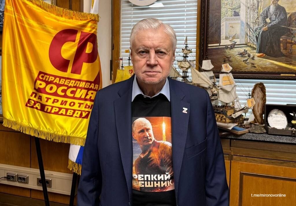 Миронов пришел в Госдуму в футболке с надписью "Крепкий Орешник"