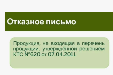 - Продукция запрещена для обращения. В случаях, когда продукция находится под запретом для производства, продажи или обращения на территории Российской Федерации, отказное письмо может быть выдано как свидетельство о невозможности сертификации.