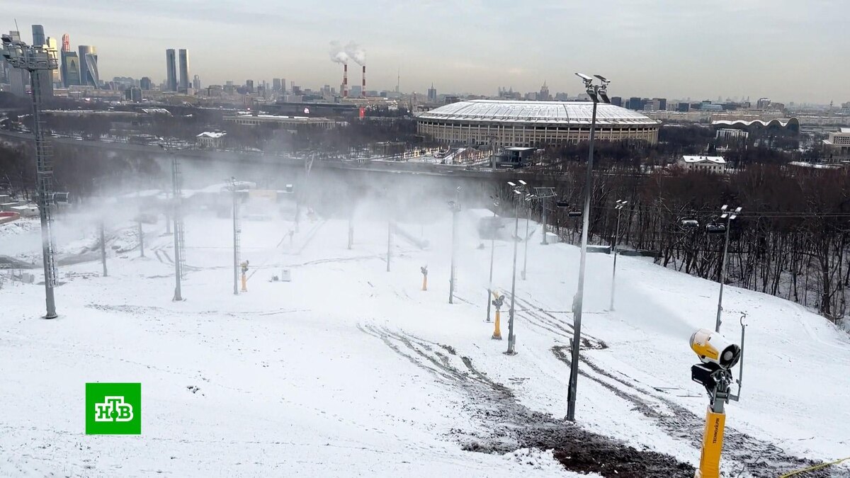 [ Смотреть видео на сайте НТВ ] На горнолыжном комплексе «Воробьёвы горы» стартовали работы по искусственному оснежению склонов. К открытию готовят один из самых популярных горнолыжных комплексов столицы — «Воробьёвы горы». Там начали засыпать склоны искусственным снегом. Обычного снега в столице пока выпало мало, поэтому к работе подключили современную систему оснежения. На склонах установили снеговые пушки — устройства, которые из холодной воды под большим давлением генерируют снег. Чем ниже температура воздуха, тем эффективнее работают такие машины. На «Воробьёвых горах» в этом году будут принимать гостей три горнолыжные трассы, в том числе спортивная с оборудованием для соревнований. Готовится к открытию обновленный учебный склон. Дмитрий Ерофеев, директор по развитию спортивного комплекса «Воробьёвы горы»: «Сейчас снега недостаточно. Не менее 30–40 сантиметров должно быть, а в некоторых местах и больше. Начала работу система искусственного оснежения. При минус 3 она уже стабильно