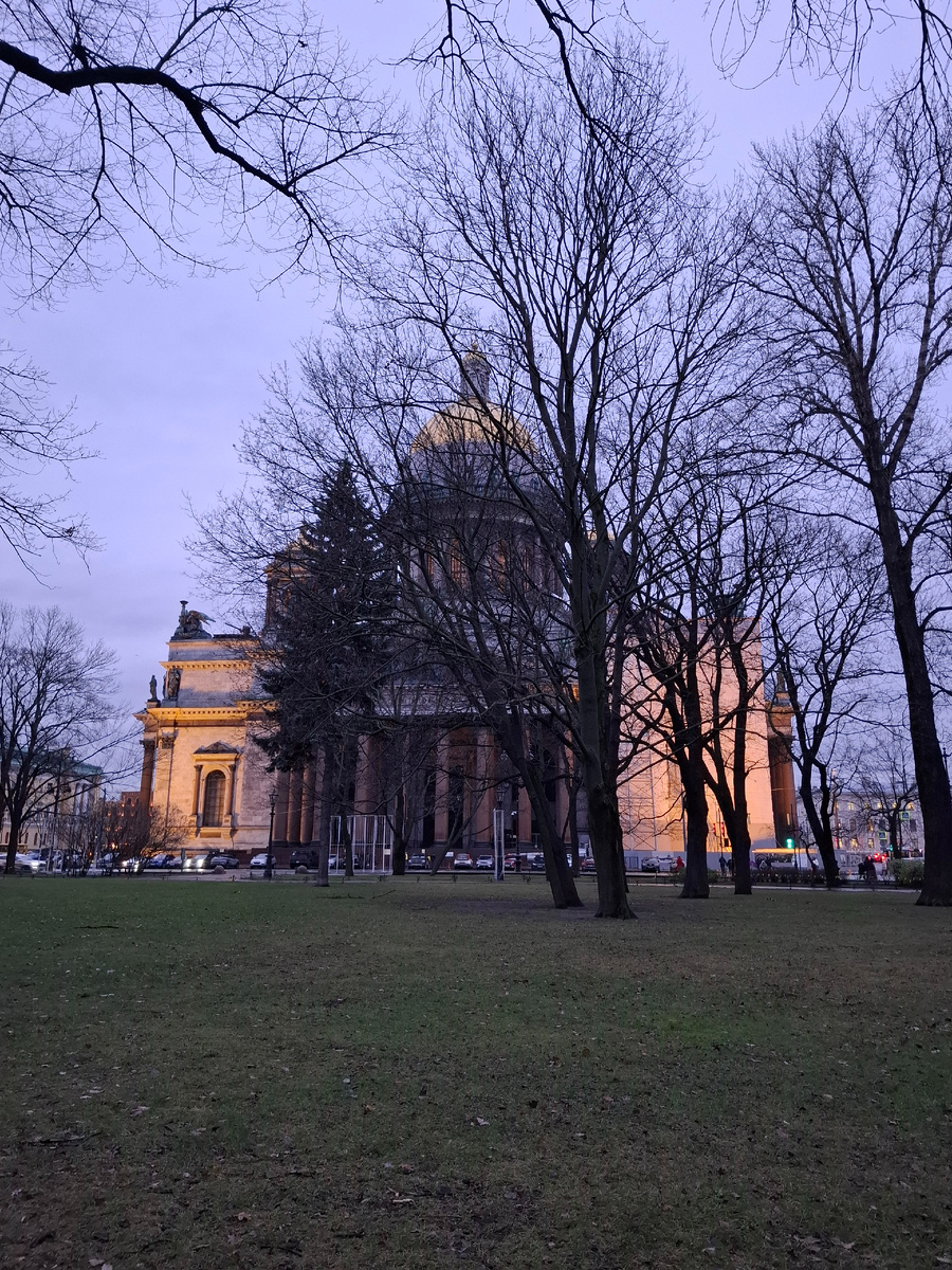 Приветствую читающих. Непредсказуемая питерская погода, то дождь, то снег, то опять, то снова -дождь. Вчера промокла, замерзла, сегодня с утра настроения показывать нос на улицу не было никакого совершенно. После обеда стало как- то мне стыдно за саму себя, ну и что что дождь, дома насидеться за зиму у себя на севере могу. Если в Питере- надо наслаждаться городом в любую погоду. Решила побывать в Исакиевском соборе, обязательно с коллонады на город посмотреть. Тем более буду под крышей раз на улице дождь. За шесть лет, что у меня здесь сын и я у него бываю по два раза в году , Исаакиевский только мимо проезжала. Была только в 1986 году, на верх точно не поднималась. Под моросящим дождем добралась до метро, под землей ориентируюсь, на земле- нет. Вышла на ст. Адмиралтейская дождь лил так не слабо. Билет взяла и на экскурсию по Собору и на коллонаду. Когда только получила пенсионное удостоверение, никогда его с собой не брала и нигде не показывала, когда поняла, что любое пр