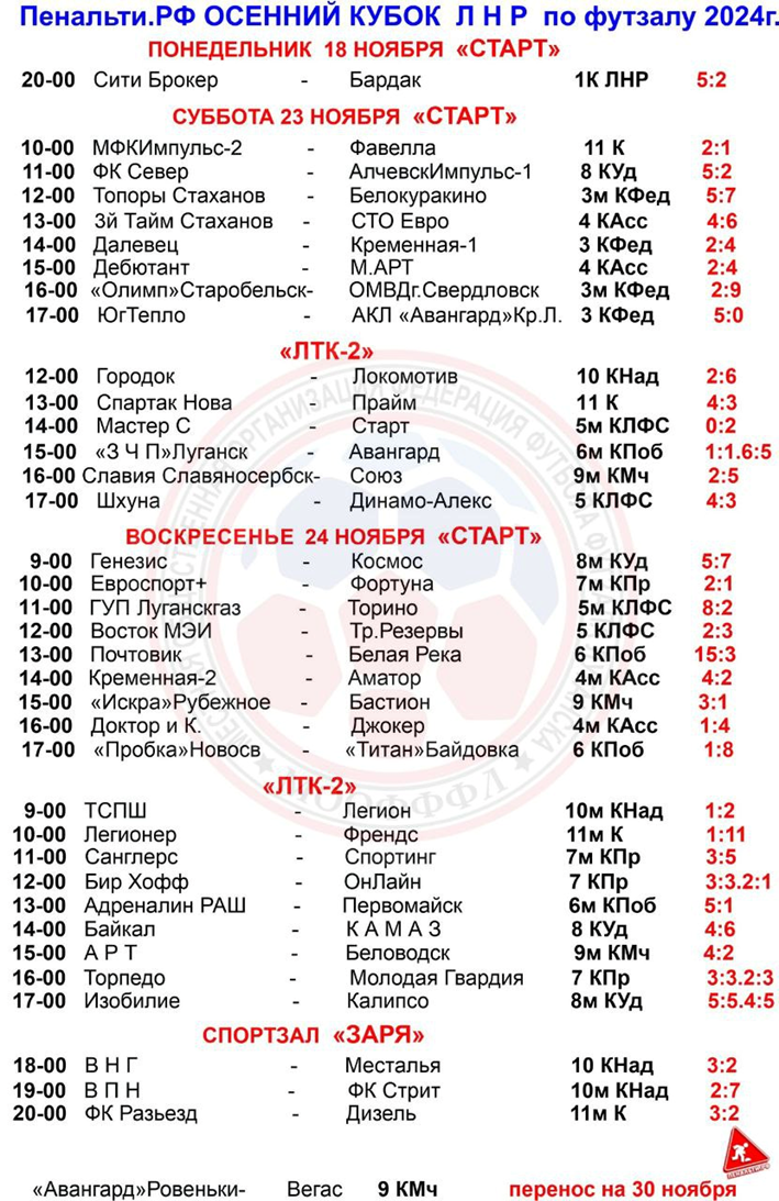 Информация подготовлена: Фан-клубом «12 Игрок» и Федерацией футбола и футзала Луганска! Результаты матчей Осеннего Кубка Луганской Народной Республики по футзалу 2024. "Авангард" (Ровеньки) сыграет в Зимнем первенстве Ростовской области 26 ноября стартует 43-е Зимнее первенство Ростовской области по футболу памяти Петра Щербатенко. И стартует оно матчем с участием донецкого "Шахтера" против команды "Строитель-М" из Каменска-Шахтинского. Турнир состоит из двух этапов – предварительного и финального. Участники распределены на группы по четыре команды в каждой и сыграют по круговой системе (в один круг). Далее все, независимо от занятых мест, попадают в финальный этап, где будут соревноватбся уже по кубковой системе – на выбывание. Турнир окончится в марте 2025 года. "Авангард" (Ровеньки) определен жребием во второй квартет. В соперниках по группе – "Строитель-М" (Каменск-Шахтинский), "Форте-М" (Таганрог) и "Шахтёр" (Донецк). 21 ноября 2024г. в Луганском высшем училище физической культуры
