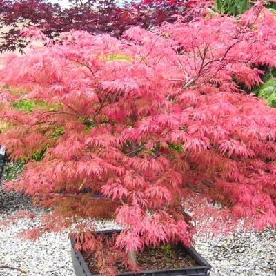 Клён Вильсон Пинк Дварф (Wilson’s Pink Dwarf) — это разновидность веерного клёна, который привлекает внимание своими изящными листьями и миниатюрностью. Этот карликовый сорт отличается компактной кроной и узкими листочками нежного розового оттенка. Максимальная высота деревца обычно не превышает 2,5 метров, а диаметр кроны составляет около 2 метров. Рост происходит медленно, и достижение максимального размера может занять несколько лет.
