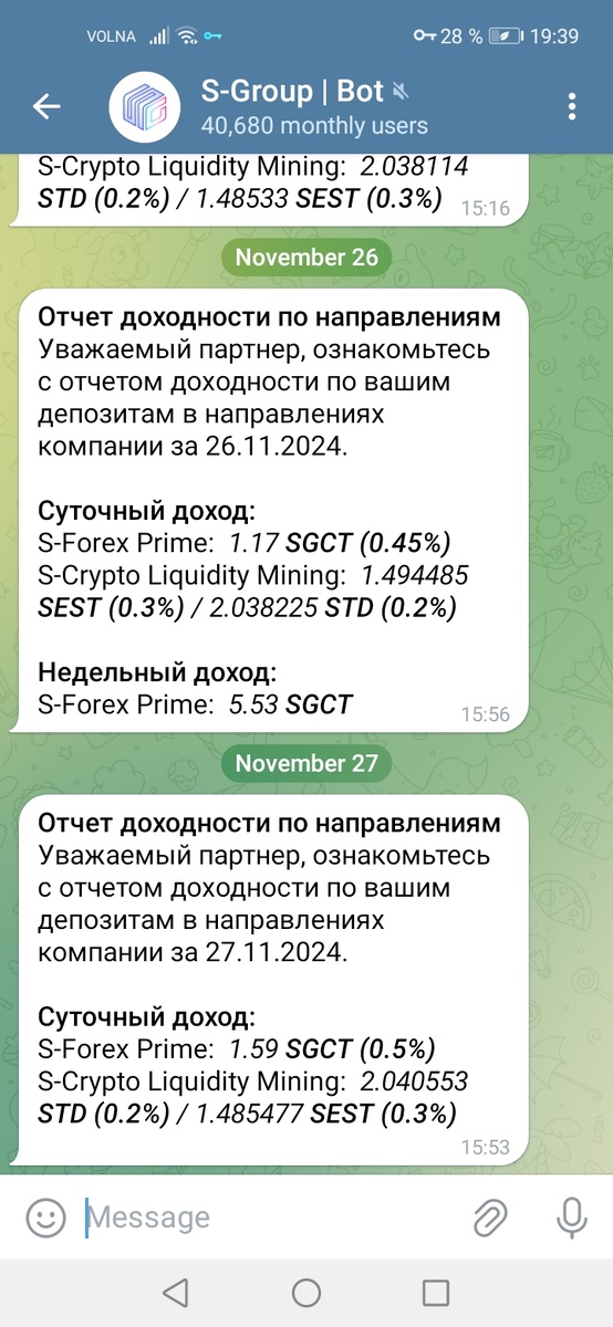 Недельный доход 5.53 SGCT (575.12 руб) вышел на баланс, оставляю для реинвеста в паре sest/sgct