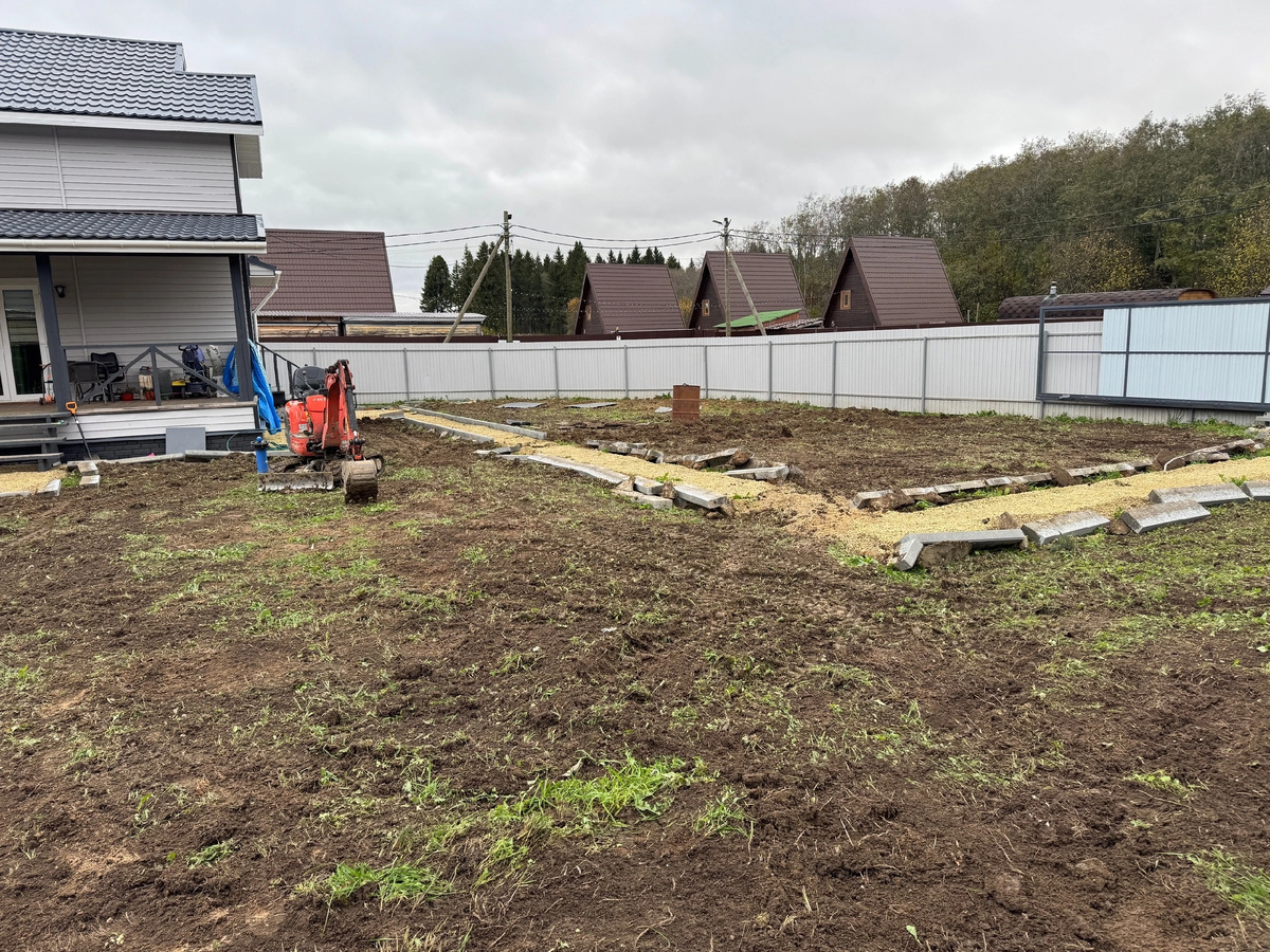⛳ КП Фаворит.💥🔥💥🔥 📌 Выровнял участок имеющимся грунтом, подготовил под засыпку. 🚜 📌Снял тротуарный бордюр и выкопал траншеи для установки новых. 🤚Готов ответить на Ваши вопросы ☎89 110199660 Антон. #ропша #отмостка #дренажучастка #водопровод #осушениеучастка #водопровод #канализация #корчевание #планировкаучастка #фундамент #миниэкскаватор