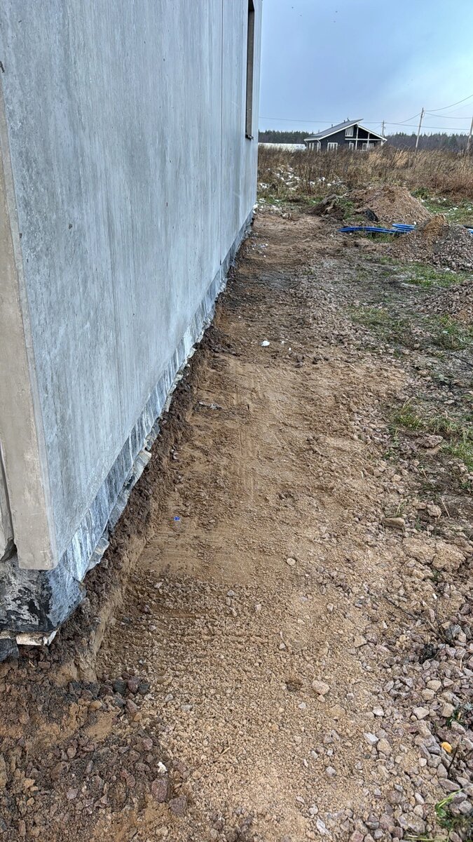 ⛳ д. Низино.💥🔥💥🔥 📌 Выбрал грунт под отмостку по периметру дома. 🏡 📌 Частично разровнял линию забора. 🚫 📌 С краю отмостки начал копать дренажную траншею глубиной 1м. 💦 🤚Готов ответить на Ваши вопросы ☎89110199660 Антон. #низино #отмостка #дренажучастка #водопровод #осушениеучастка #водопровод #канализация #корчевание #планировкаучастка #фундамент #миниэкскаваторхх