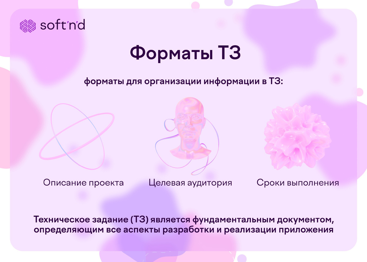 Форматы ТЗ Техническое задание (ТЗ) является фундаментальным документом, определяющим все аспекты разработки и реализации приложения. Его формат может варьироваться в зависимости от сложности проекта, требований заказчика и специфики команды разработчиков. Однако, существует несколько основных форматов, которые рекомендуется использовать для организации информации в ТЗ: Основные требования к ТЗ: Детализированная специфика: Полезность для менеджмента и поддержки: Как написать ТЗ (Часть 1) Переход от концепции к действию требует четкого и структурированного ТЗ. Написание данного документа должно начинаться с тщательного планирования и анализа. Планирование и анализ 2. Определение целей: 3. Формирование требований: Создание структуры ТЗ 2. Основные требования: 3. Детализированные спецификации: . Как написать ТЗ (Часть 2) Продолжение работы над ТЗ требует углубления в детали и структуризации всей собранной информации. Разработка детализированных спецификаций 2. Архитектура системы: 3.