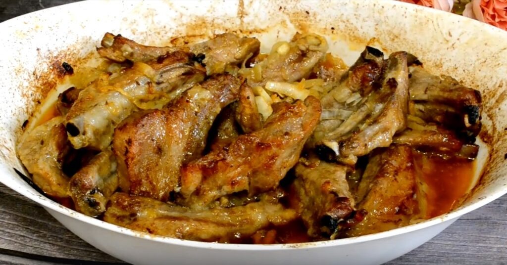 Нежные, ароматные, очень вкусные ребрышки готовятся без особых усилий. Мясо, лук и специи – вот все, что вам потребуется для этого шикарного блюда. Продукты: ребра свиные – 1 кг, большая луковица – 1 шт., соль — по вкусу, паприка острая 1 ч. л., зира — 1 ч. л., лавровый лист — 3-4 листика. Приготовление: ребрышки помыть, обсушить, порезать на порционные кусочки. Переложить в миску, добавить соль, паприку, зиру, лавровый лист и порезанный полукольцами лук. Перемешать. Накрыть миску пищевой пленкой и оставить мариноваться на 2 часа. Переложить в форму для запекания, накрыть плотно фольгой и поставить в духовку, предварительно разогретую до 180 градусов на один час. Через указанное время снять фольгу и вернуть ребрышки в духовку еще на 30 минут, чтобы они подрумянились. Можно подавать к столу с гарниром или овощным салатом.