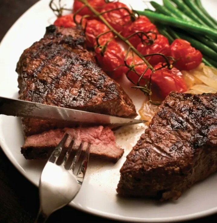 Я накладываю большую тарелку овощей и бифштекс,…разрезанный ПОПОЛАМ. Мое знакомство с подсчетом калорий не прошло даром, - из всего следует брать самое лучшее. В моей голове имеется список продуктов и блюд с высокой калорийностью. От многих продуктов из этого списка мне приходилось отказываться, когда я корпела над количеством калорий. Теперь я смело делю эти блюда пополам и ем с удовольствием!