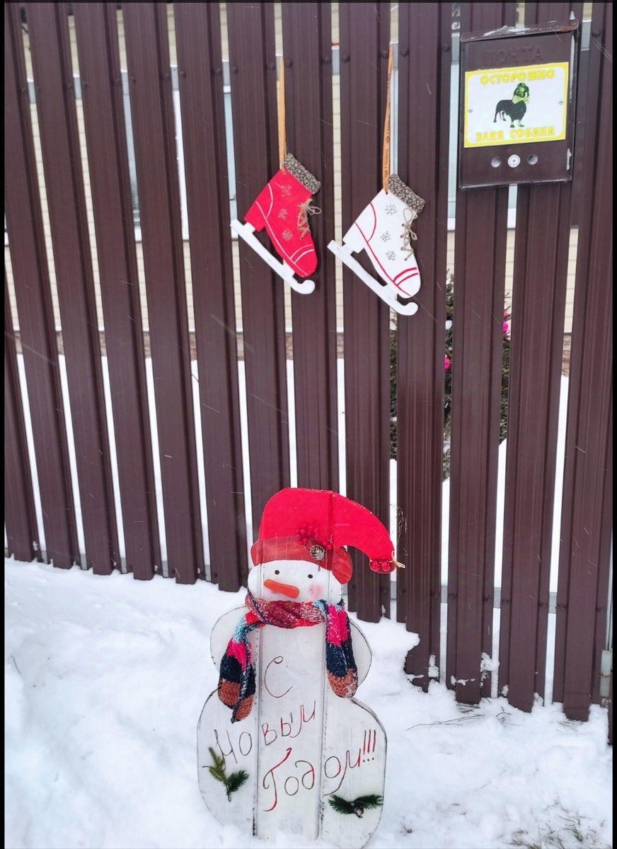 Добрый день всем! Садовый сезон закрыт, начала я потихоньку готовиться к Новогодним праздникам. В том году у моей калитки стоял охранник. Было много размышлений и комментариев, что снеговичок сделает ноги. Но в нашей деревне оказались очень порядочные жители, достоял до весны! В комплект к снеговику я смастерила коньки, а в проекте были ещё и саночки. Но до них тогда руки не дошли, а сейчас решила завершить композицию. После стройки осталось много обрезков вагонки, из них и буду мастерить. Выпилила полозья и два бруска для соединения. 5 реек 3 см на 18 см для сиденья. Всё отшлифовала и стала соединять. Чтоб рейки не лопнули, вначале сверлила отверстия, затем скручивала саморезами. Декоративные сани готовы. Покрасила в белый и красный цвет. Контуром нарисовала снежинки. И верёвочку от Палыча. Сани ждут снега! Как только наступит зима со снегом, снеговик с коньками и санками отправится на улицу. Спасибо за внимание, 👍, подписки! Всем мира и добра!