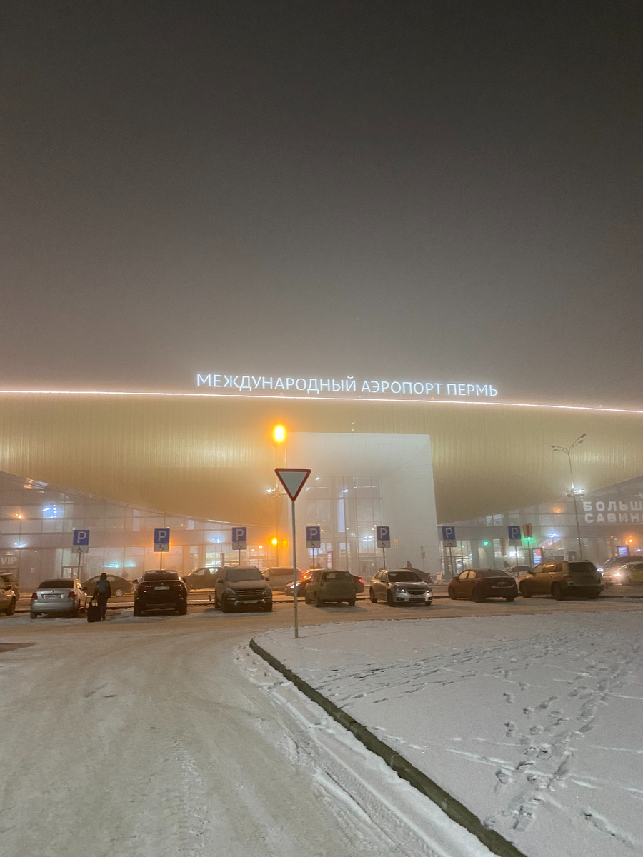 В 23:00 мы выехали из Уфы в Пермь. Автобус был очень холодный, водитель иногда включал печку, но это не помогало. В 4:50 нас высадили возле аэропорта Большое Савино в Перми. Я чувствовала себя ёжиком в тумане, до самого здания надо было пройти метров 500, но из-за тумана его совсем не было видно, шли по навигатору, на улицу -20… и ооо это незабываемое чувство, когда заходишь в теплое помещение. Я сдала в камеру хранения горнолыжное снаряжение и мы решили наконец-то доспать. Да, прям в зале ожидания в аэропорту 🤷🏼♀️ В 10 утра я решила, что всё-таки надо выехать в город и познакомиться с Пермью. Каждые 20 мин от аэропорта отходит 108 автобус. Через час я докатилась до Речного вокзала, к набережной р.Кама. Там стоит стоял знаменитый памятник - фраза «Счастье не за горами». Но набережная находится на реконструкции и фразу снесли, обидненько…И я расстроенная поехала обратно в аэропорт. В 17:15 по расписанию у нас вылет Пермь-Мурманск. Самолет был полупустой и тоже холодный 🤦🏻♀️ Уже
