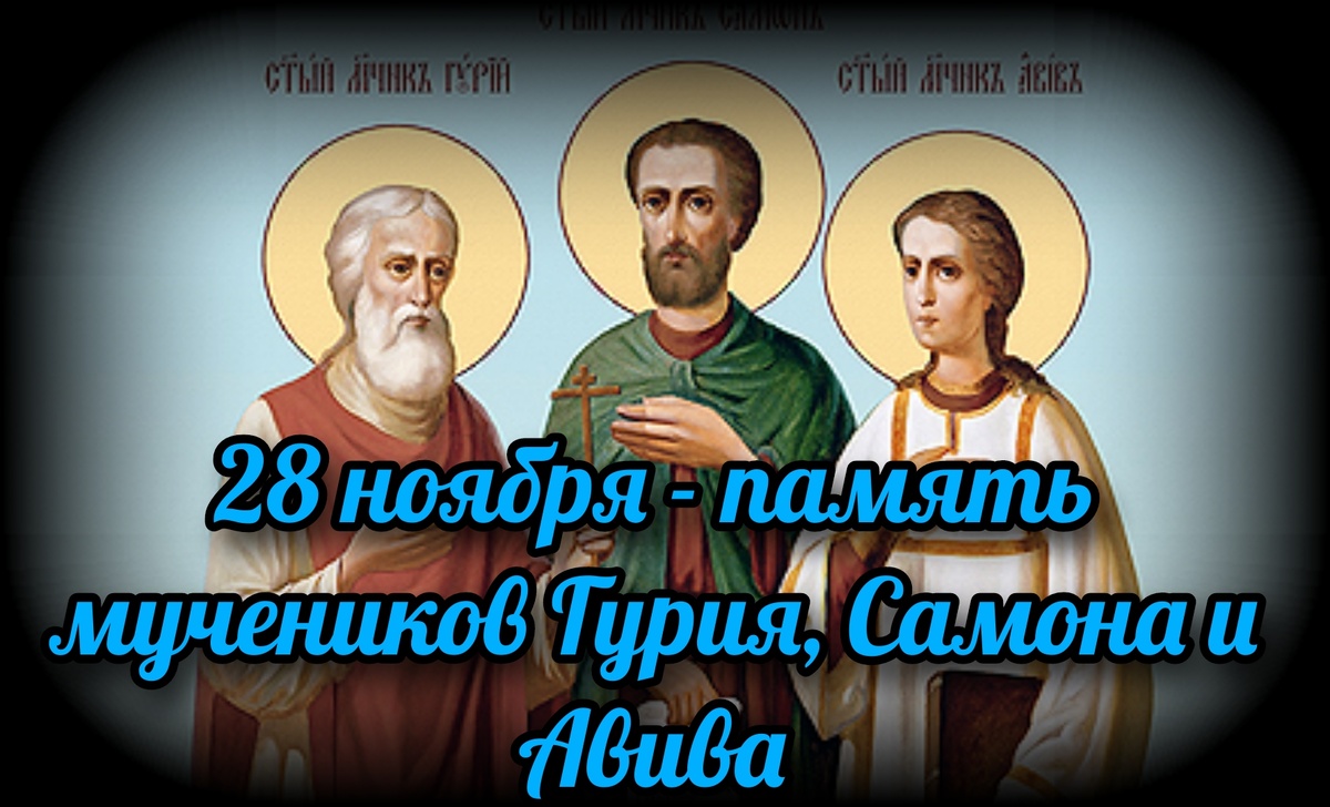 - 28 ноября христиане чтят память святых мучеников и исповедников Гурия, Самона и Авива, которые считаются небесными покровителями супружества, брака и семьи.