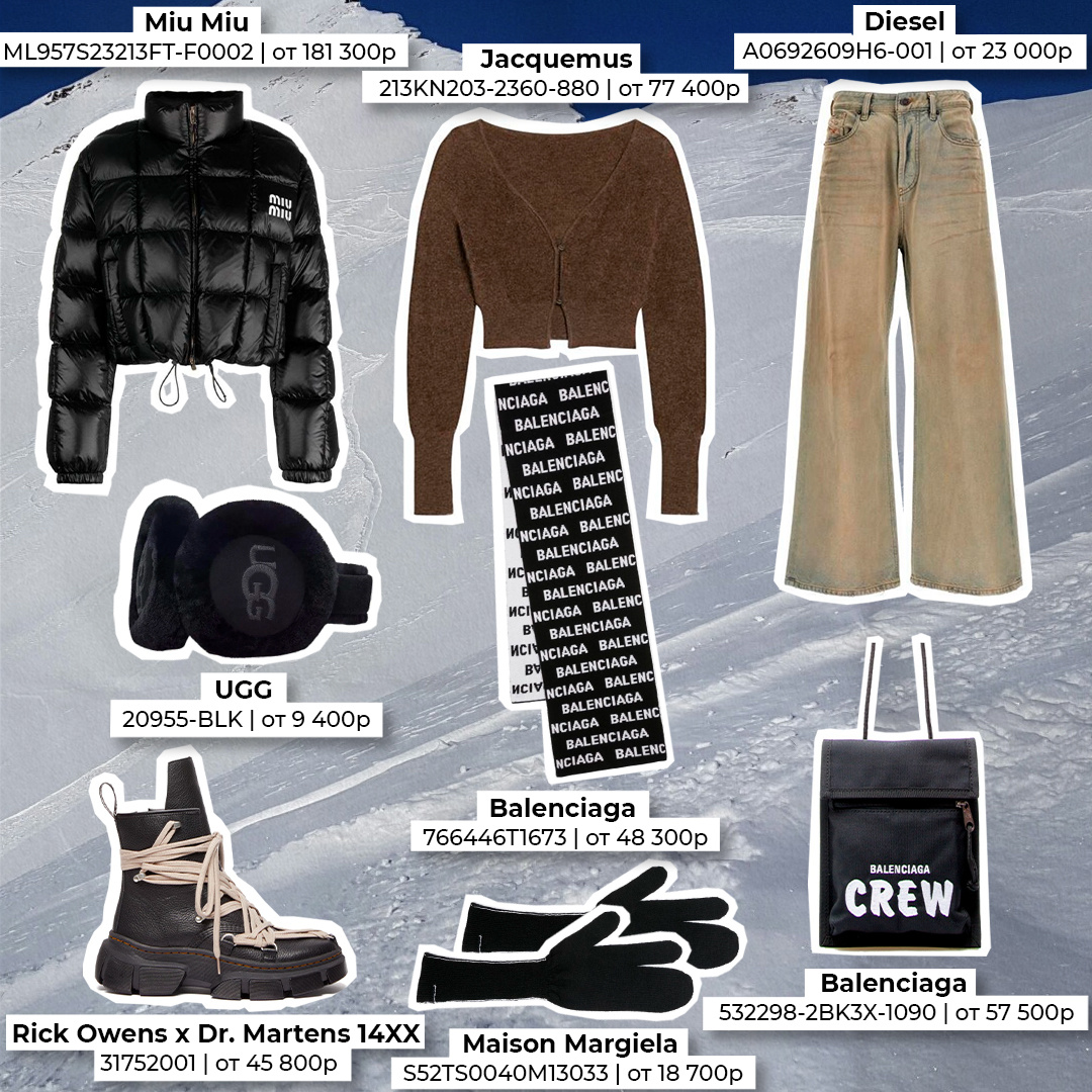 Собрали максимально брендовый образ для твоих зимних прогулок. И пусть все оборачиваются вслед. Miu Miu, арт. ML957S23213FT-F0002, цена от 181 300₽* Jacquemus, арт. 213KN203-2360-880, цена от 77 400₽* Diesel, арт. A0692609H6-001, цена от 23 000₽* Rick Owens x Dr. Martens 14XX, арт. 31752001, цена от 45 800₽* Balenciaga, арт. 766446T1673, цена от 48 300₽* UGG, арт. 20955-BLK, цена от 9 400₽* Maison Margiela, арт. S52TS0040M13033, цена от 18 700₽* Balenciaga, арт. 532298-2BK3X-1090, цена от 57 500₽* *стоимость может изменяться в зависимости от курса и размера Больше интересного на нашем сайте POIZON