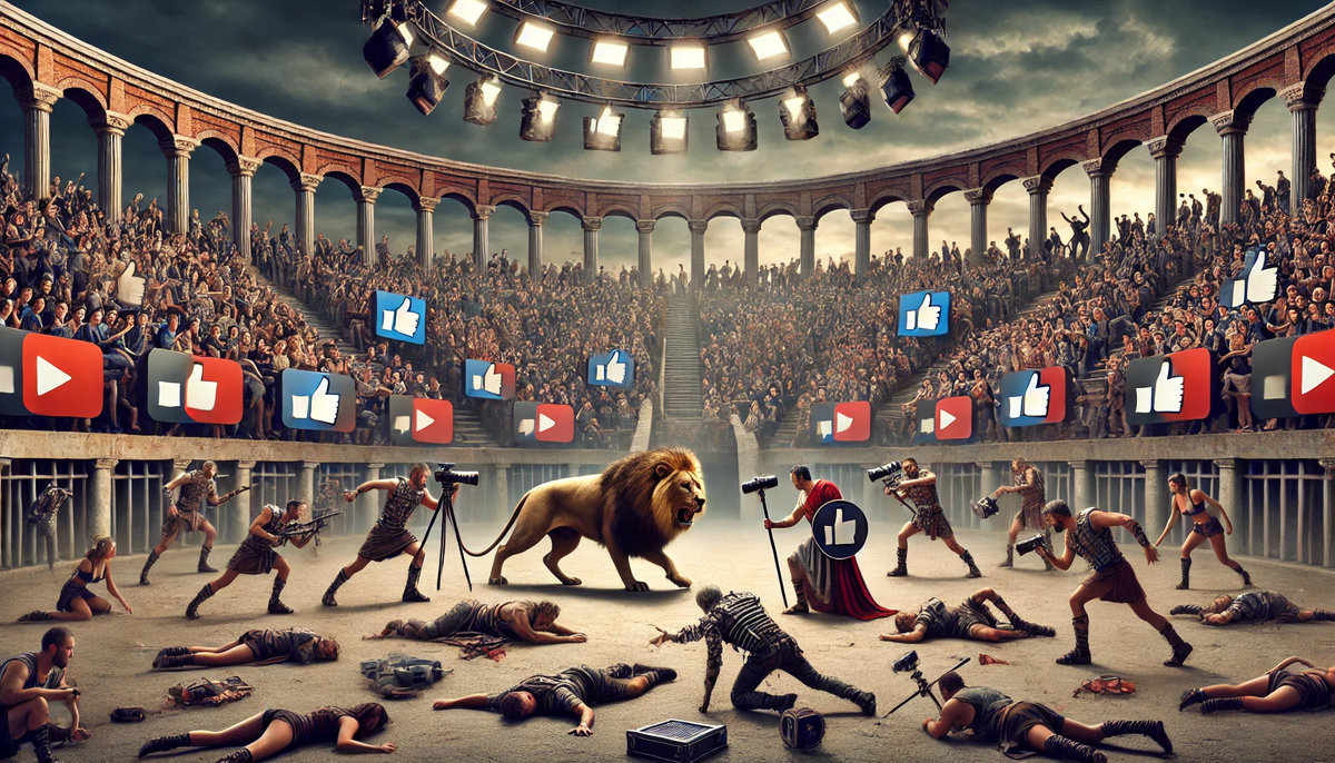 Если представить современный цифровой мир в образах прошлого, то YouTube (и TikTok) можно назвать колизеем XXI века. Здесь, как и в древнем Риме, проходят зрелища, а главные действующие лица — видеоблогеры. Однако их арена — это экран, а оружие — контент. Их судьба зависит от аудитории, словно от толпы в древних амфитеатрах. Зрители, словно римская публика, решают: будет ли поднят большой палец вверх (лайк) или вниз (игнорирование), определяя, останется ли блогер “в живых” в беспощадном мире алгоритмов. Блогеры на YouTube не просто создают контент; они борются за внимание, время и одобрение зрителей. Эта борьба гораздо сложнее, чем кажется на первый взгляд. Как и древние гладиаторы, они вынуждены постоянно доказывать свою ценность, быть яркими, запоминающимися и готовыми к новым “битвам”. • Ежедневная борьба за внимание: Зрители на YouTube — это публика, которую легко отвлечь. Каждый день на платформе загружается более 500 часов видео в минуту, что превращает каждого блогера в малень