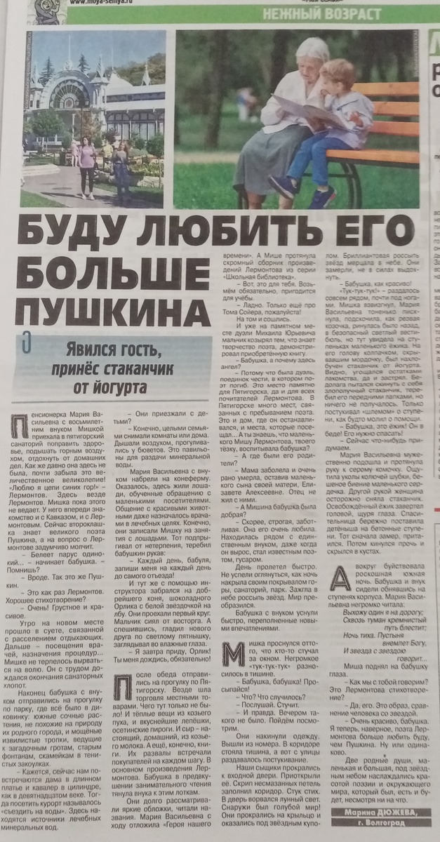 Мой рассказ о Лермонтове опубликован в Моей семье