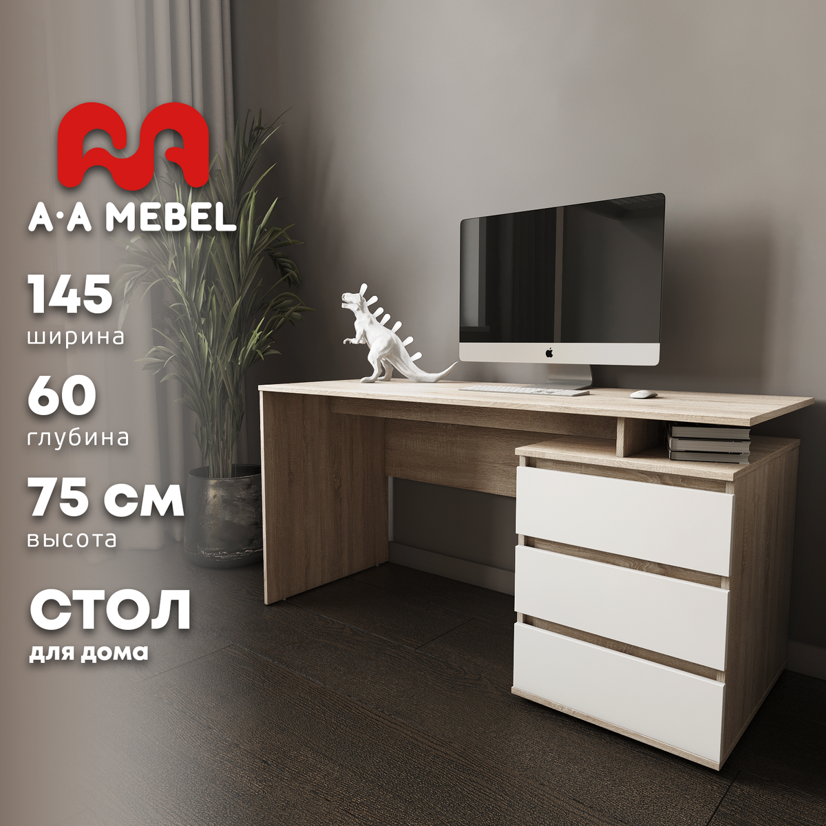 представляет собой сочетание письменного стола и тумбы, образуя, таким образом, рабочее пространство, которое значительно облегчит вашу работу. На столе можно разместить монитор компьютера и делать заметки. Тумба оборудована вместительными выдвижными ящиками, которые обеспечат хранение различных документов и других предметов, необходимых для работы, творчества и хобби – все необходимое всегда под рукой.
