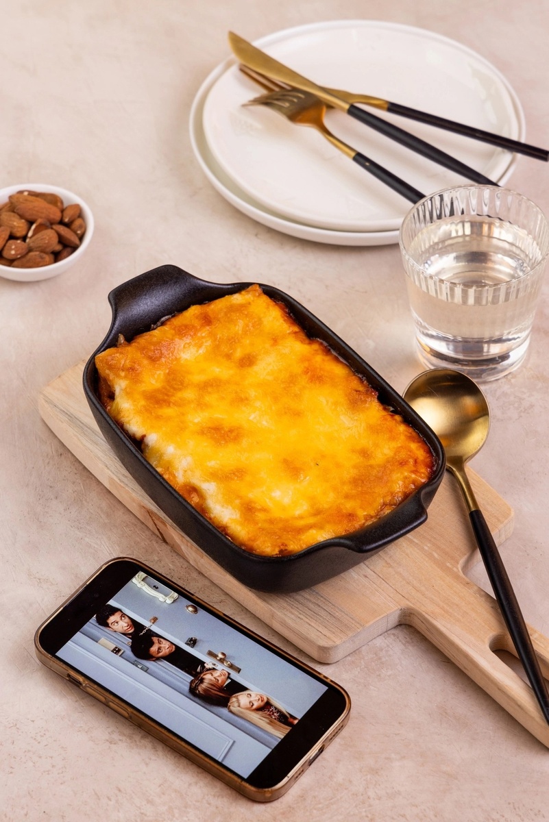Лазанья с «Друзьями» всегда вкуснее! Есть тут поклонники сериала «Друзья»? Помните, сколько забавных сцен выстроено вокруг лазаньи в первом сезоне? Один из самых эпичных моментов – 12 больших лазаний, которые Моника приготовила для тети, и которые той оказались не нужны… А нам бы очень пригодились! С вами рубрика, в которой мы готовим блюда из любимых фильмов Вместе с шефом Олегом Томилиным запекаем фирменную лазанью Моники и делимся рецептом с вами. Ингредиенты: Лазанья — 6 листов Молоко — 250 г Масло сливочное — 50 г Мука — 65 г Свиной фарш АГРОЭКО — 250 г Морковь — 80 г Лук репчатый — 50 г Сельдерей — 70 г Сыр моцарелла — 150 г Мускатный орех — 2 г Тимьян сухой — 3 г Масло растительное — 100 г Томаты протертые — 150 г Соль и перец — по вкусу Сахар — 1/4 чайной ложки Приготовление: 1. Овощи нарежьте мелким кубиком, обжарьте на растительном масле. 2. К овощам выложите фарш, жарьте до готовности. Затем добавьте томаты, убавьте огонь и томите 20 минут, в конце добавьте соль, перец, спец