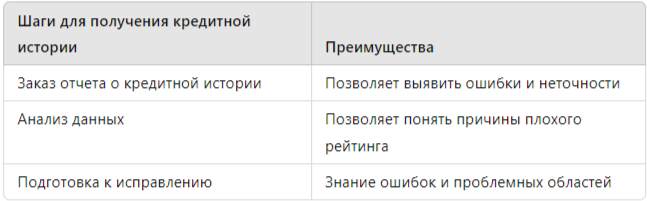 Первый шаг к исправлению кредитного рейтинга — это получить информацию о своей кредитной истории. Вы можете заказать бесплатный отчет о кредитной истории один раз в год в БКИ. Это позволит вам выявить все ошибки и несоответствия.