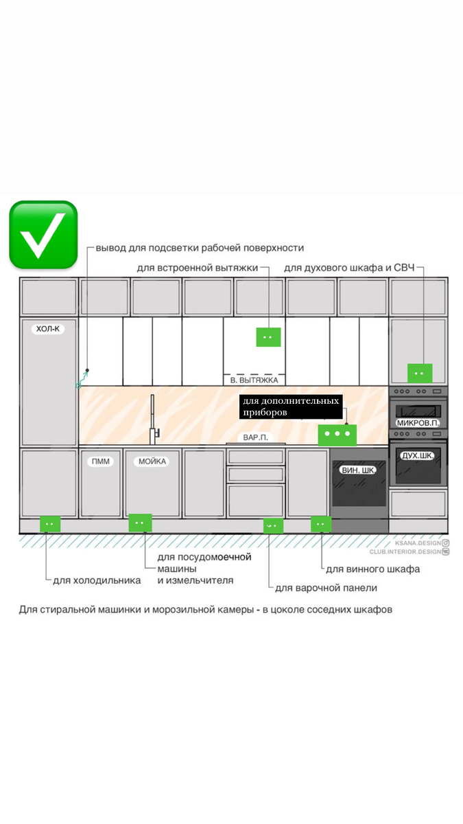 🙌🏻На современной кухне мы используем множество устройств, которые требуют электропитания - от микроволновок и кофеварок до миксеров и тостеров. Поэтому важно обеспечить доступ к электричеству в удобных местах, чтобы не возникало неудобств при использовании техники.