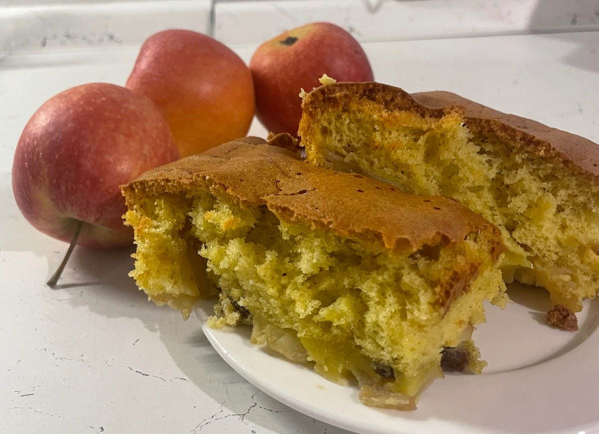 Вкуснейшая, простая, ароматная выпечка для всей семьи! Пышная шарлотка с яблоками понравится вам с первого взгляда. На замешивание теста и нарезку фруктов уйдет не больше 10 минут, остальное время пирог будет запекаться в духовке. Сегодня хочу поделиться рецептом пышной яблочной шарлотки с корицей. Разбиваем яйца, добавляем сахар и соль. Хорошенько взбиваем, до устойчивой густой пены. Добавляем оставшиеся ингредиенты, перемешиваем. Текстура теста должна получится легкой, воздушной с большим количеством пузырьков. Затем яблоки измельчаем, и посыпаем корицей. Добавляем изюм. Чистить яблоки или нет, это не принципиально, кому как больше нравится. Добавляем подготовленные яблоки в тесто, перемешиваем. Форму обильно смазываем сливочным маслом. Выкладываем в форму тесто и по желанию украшаем яблоками. Отправляем в духовку выпекаться 40-50 минут при 180 градусах. Готовность проверяем зубочисткой или деревянной шпажкой. Воздушный, ароматный и красивый пирог готов, приятного аппетита!