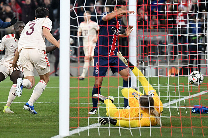 Первый топ-матч Матвея. Первый топ-матч Матвея Сафонова за «ПСЖ»: вышел против «Баварии» (0:1), классно вытащил опасный удар Джамала Мусиалы из штрафной на 7-й минуте, а в конце тайма ошибся на выходе из ворот при угловом – и случился единственный гол в матче. Как ошибся Сафонов Это второй подряд выход Матвея в старте «ПСЖ», отыграл в прошлом туре с «Тулузой» и закончил на ноль. Всего у Сафонова три сухаря в пяти матчах, в том числе против «Жироны» в Лиге чемпионов. Но с грандом размера «Баварии» играл впервые – и явно нервничал. На 37-й минуте Йозуа Киммих подал угловой, а Матвей замешкался на линии. Попал под Мусиалу, тот встал прямо перед ним. Сафонов потом возмущался, судьи проверяли на фол. Только ничего не было. Наш кипер оттолкнул Джамала, но не сумел толком выпрыгнуть за мячом. И срезал прямо на соперника. Ким Мин Чжэ легко занес в ворота головой. Артем Денисов в телеграм-канале подчеркивает, что проблема в первом тайме была не только в угловом: «С пропущенным все понятно, но у