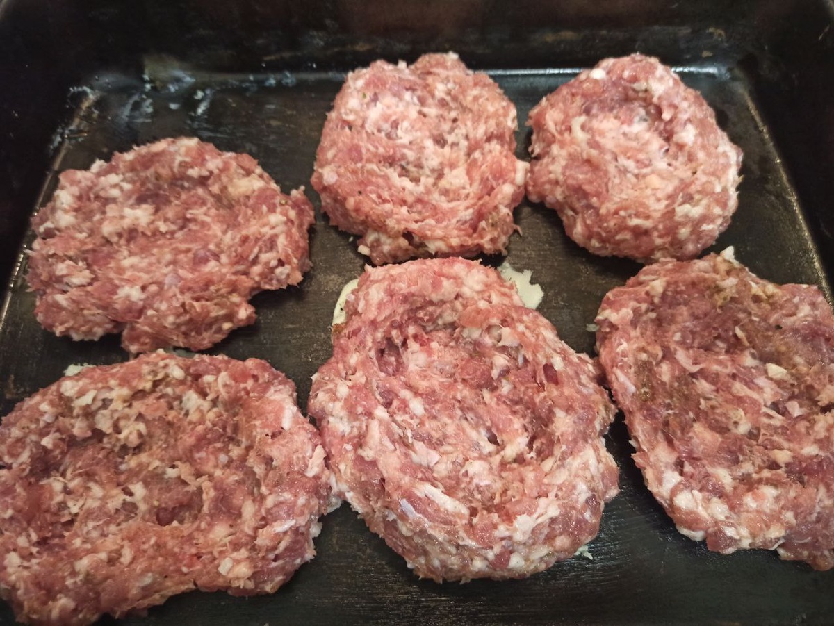 Порционно разложить фарш, сделать "лодочки".