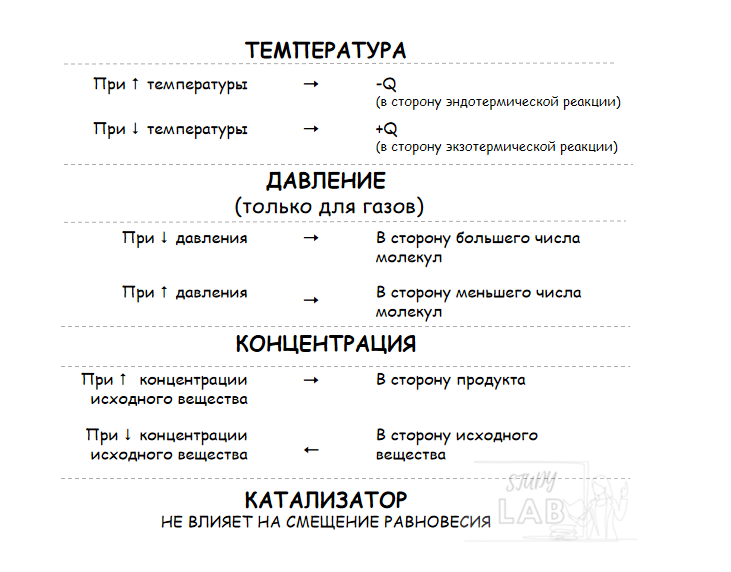 ПРИ ПОНИЖЕНИИ ТЕМПЕРАТУРЫ РАВНОВЕСИЕ СМЕЩАЕТСЯ В СТОРОНУ ПРОТЕКАНИЯ ЭКЗОТЕРМИЧЕСКОЙ РЕАКЦИИ.